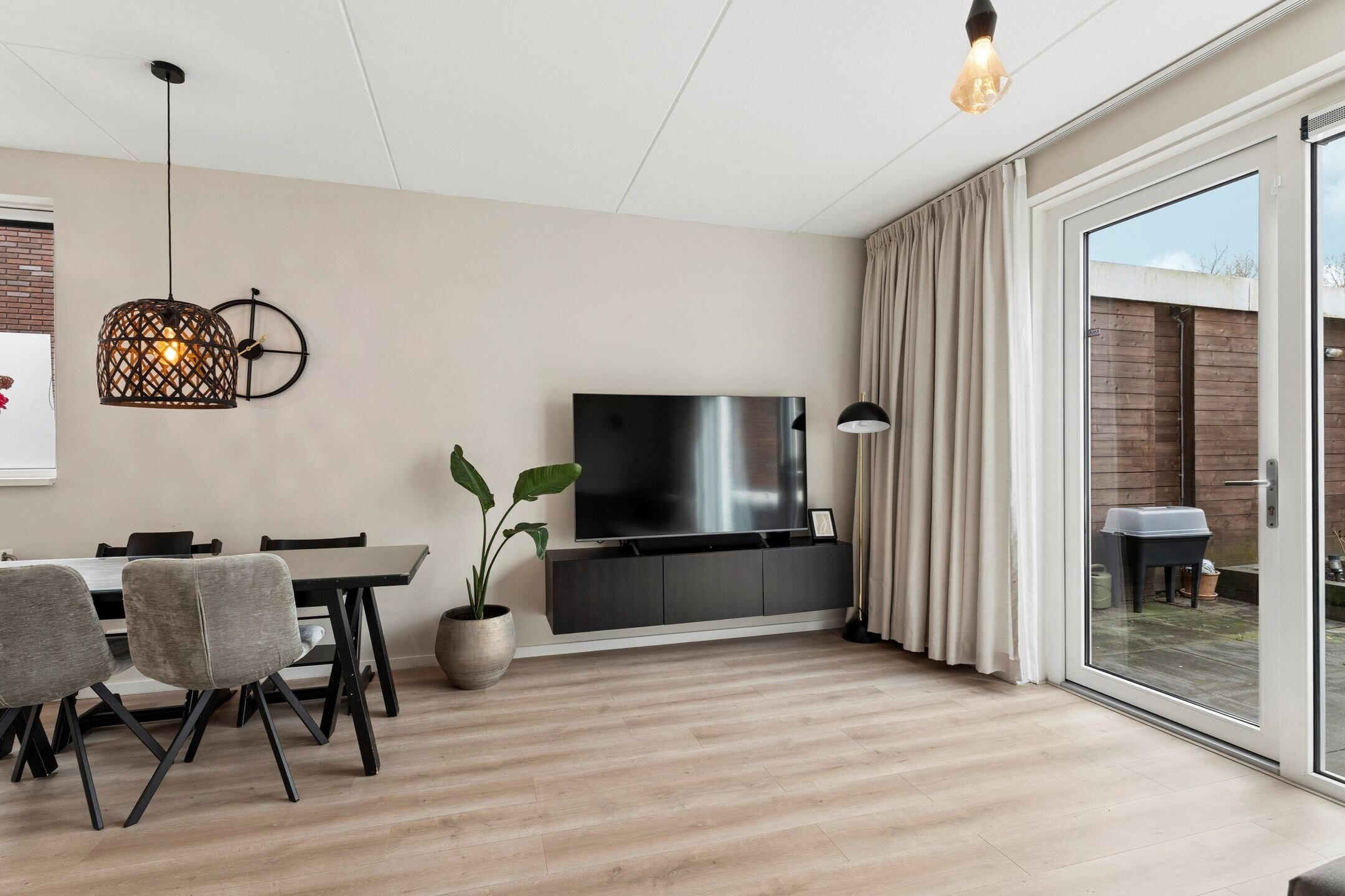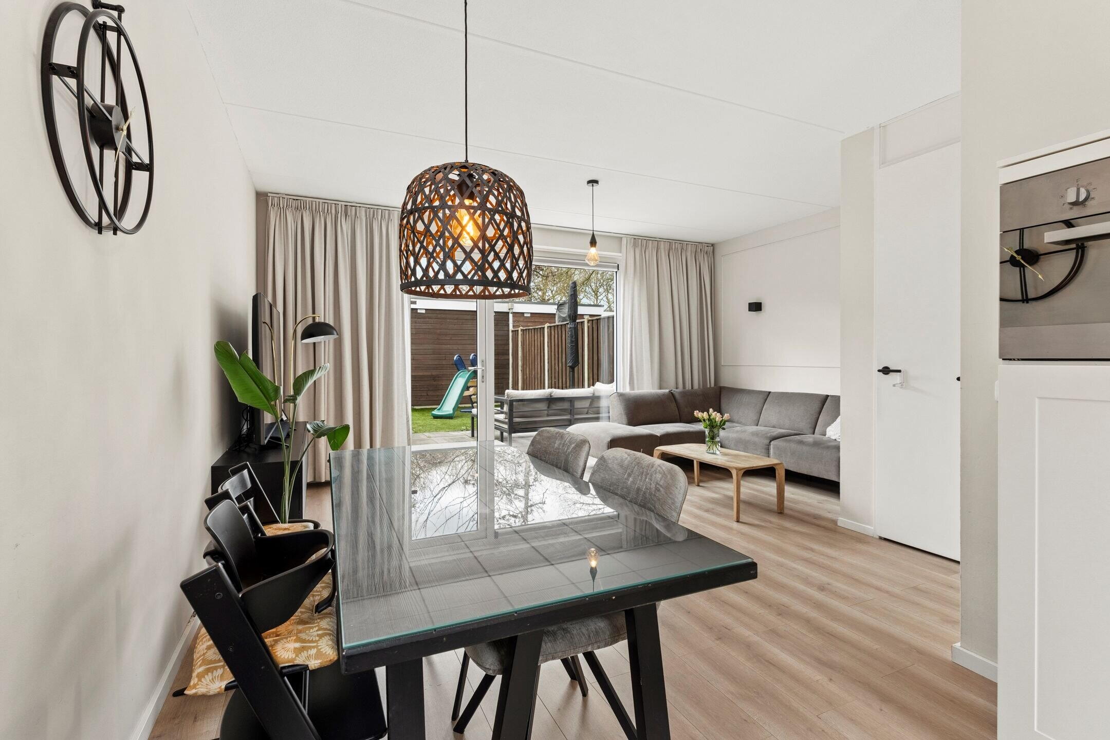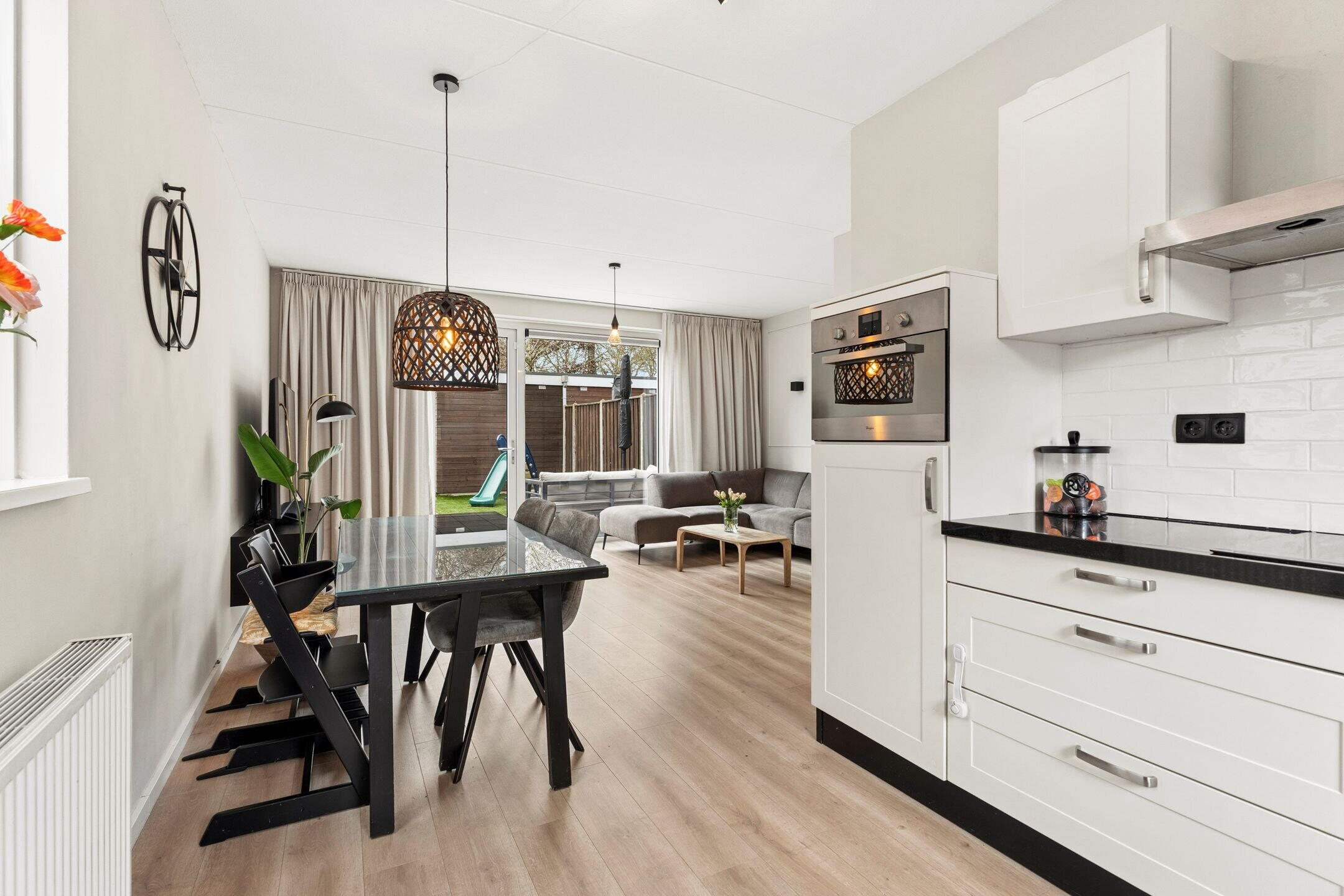 Via de voortuin betreed je de woning. In de hal bevinden zich de meterkast, het toilet, de trapopgang én toegang tot de woonkamer. De woonkamer is licht en ruim opgezet en profiteert van extra daglicht door de hoekligging. De moderne keuken is in 2023 vernieuwd en uitgevoerd in een praktische hoekopstelling met diverse inbouwapparatuur zoals een inductie kookplaat, afzuigkap, vaatwasser, combi oven en koelkast. In de woonkamer bevindt zich een praktische trapkast voor extra bergruimte. De gehele begane grond is verzorgd afgewerkt en voorzien van een laminaatvloer.