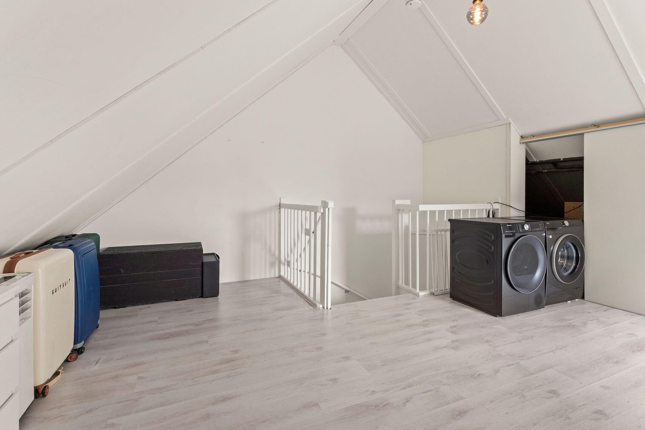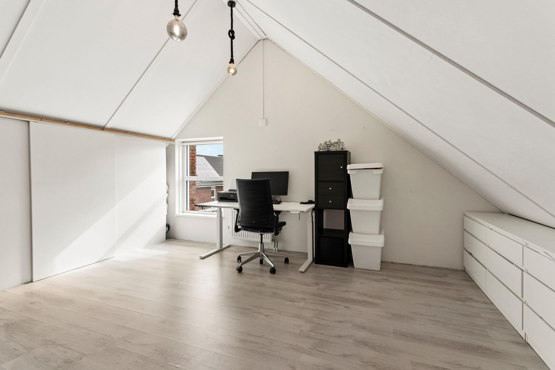 De vaste trap leidt naar de tweede verdieping met een ruime zolderverdieping. Deze ruimte beschikt over bergruimte achter de schotten, de aansluitingen voor wasmachine en droger en de CV-opstelling. Daarnaast biedt de zolder volop mogelijkheden om nader in te delen, bijvoorbeeld als vierde slaapkamer, werkruimte of hobbykamer.