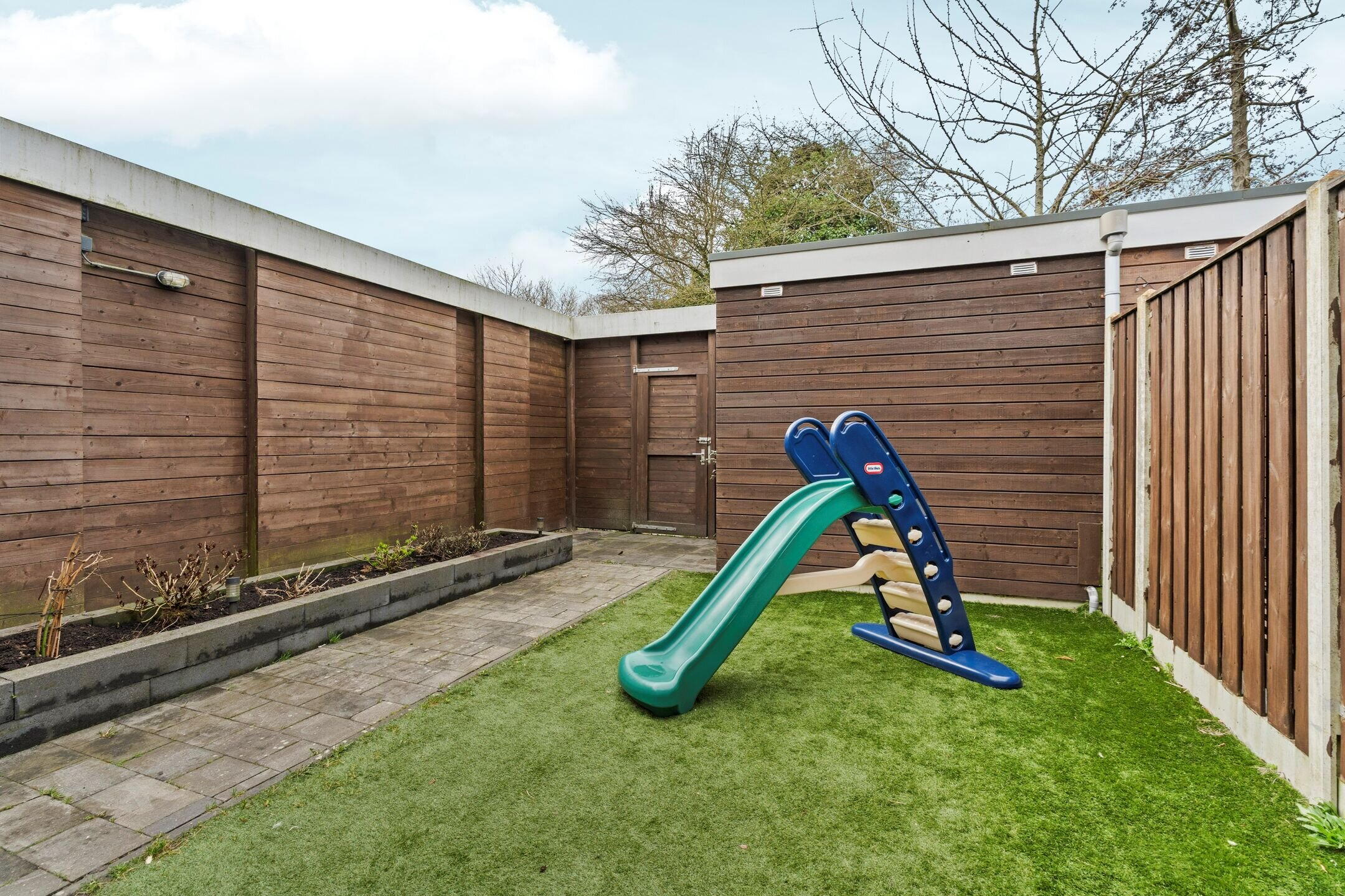 De voortuin is verzorgd aangelegd en gelegen op het oosten. De achtertuin is verzorgd aangelegd met een combinatie van bestrating en plantenborders. Een fijne plek om te ontspannen en te genieten van het zonnetje door de ligging op het westen. Achterin de tuin bevindt zich een berging en een praktische achterom.
